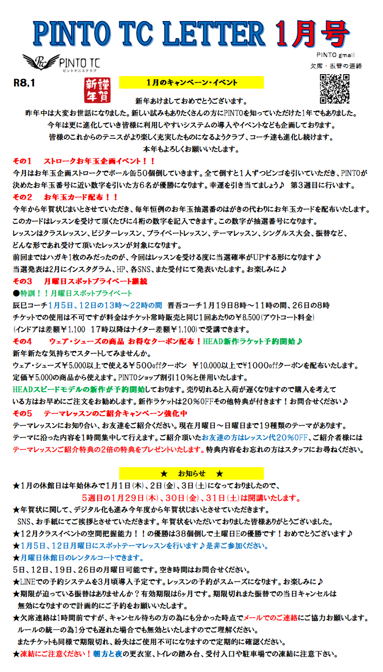 PINTO TC LETTER1月号