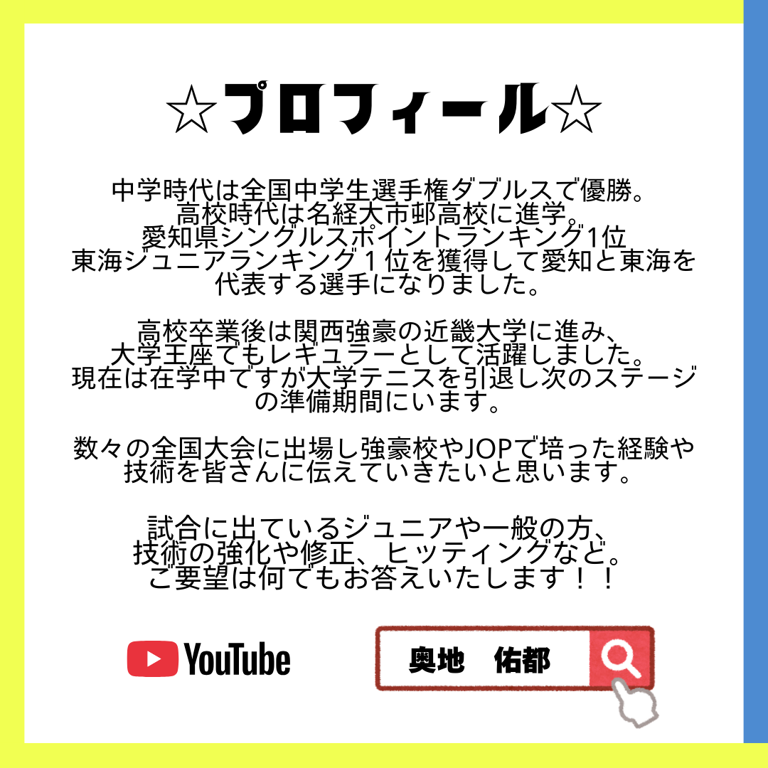 近畿大学硬式庭球部 奥地選手のプライベートレッスン